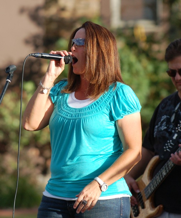 Freefall. Left to right Kerri Cotant (lead singer), Mark Jones (bass - under the table), David Ewing (drums), Kimo Lewis (soundman), Bryan Chapman (keys), Cory Jensen (lead guitar)