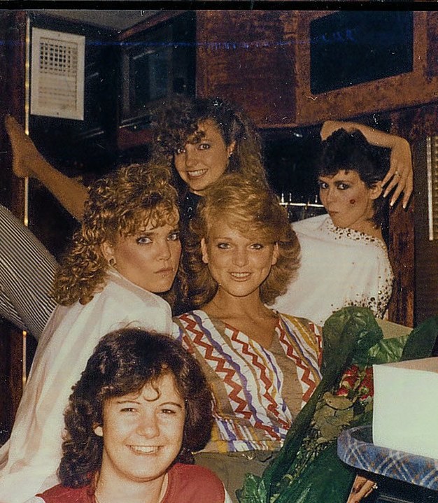 Liz singing with Kurt Bestor. Left to right: Felicia Gibbons, Liz, Kurt Bestor, Liz Boyack, and Holly