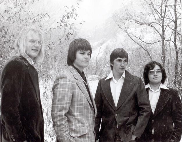Prodigy (circa 1973). Left to right: Mark Evans (drums), Kirk Anderson (trombone and vocals), John Davis (trumpet & vocals), and Ken Hughes (bass)